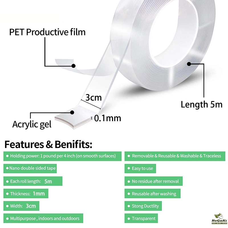 1M/2M/3/5M Nano Tape Double Sided Tape Transparent NoTrace Reusable Waterproof Adhesive Tape Cleanable Home gekkotape