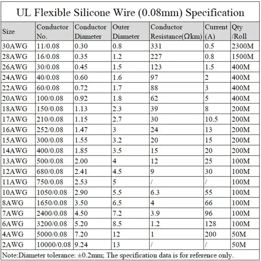 Heat Resistant Flexible Silicone Wire 30AWG 28AWG 26AWG 24 22 20AWG 18AWG 16AWG Stranded Tinned Copper Wire, 5 Colour Mixed Set