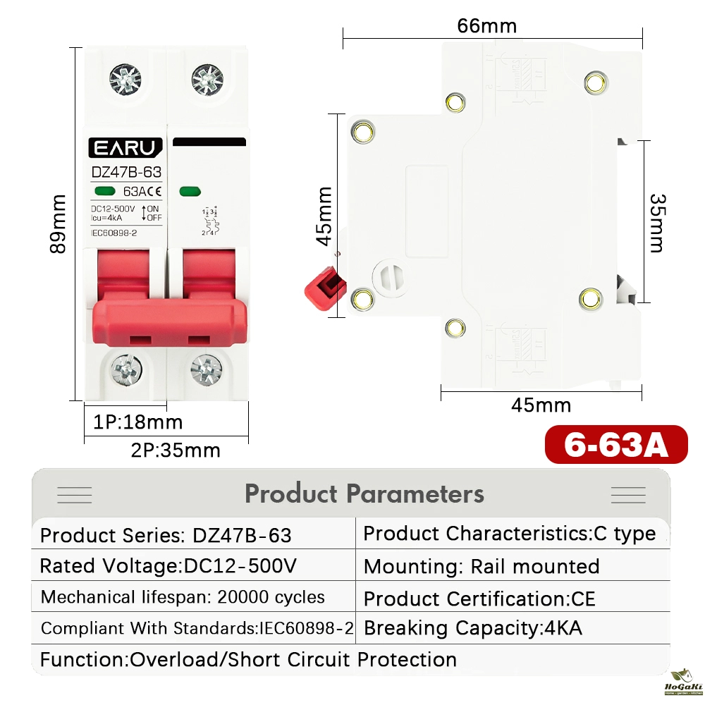 Breaking Capacity: 6A-63A 4kA / 80A-125A 6kA