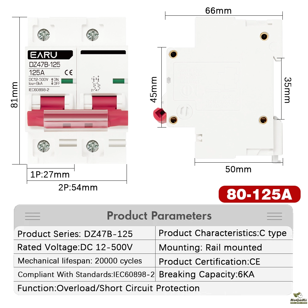 Rated Current: 6,10,16,20,25,32,40,50,63,80,100,125A