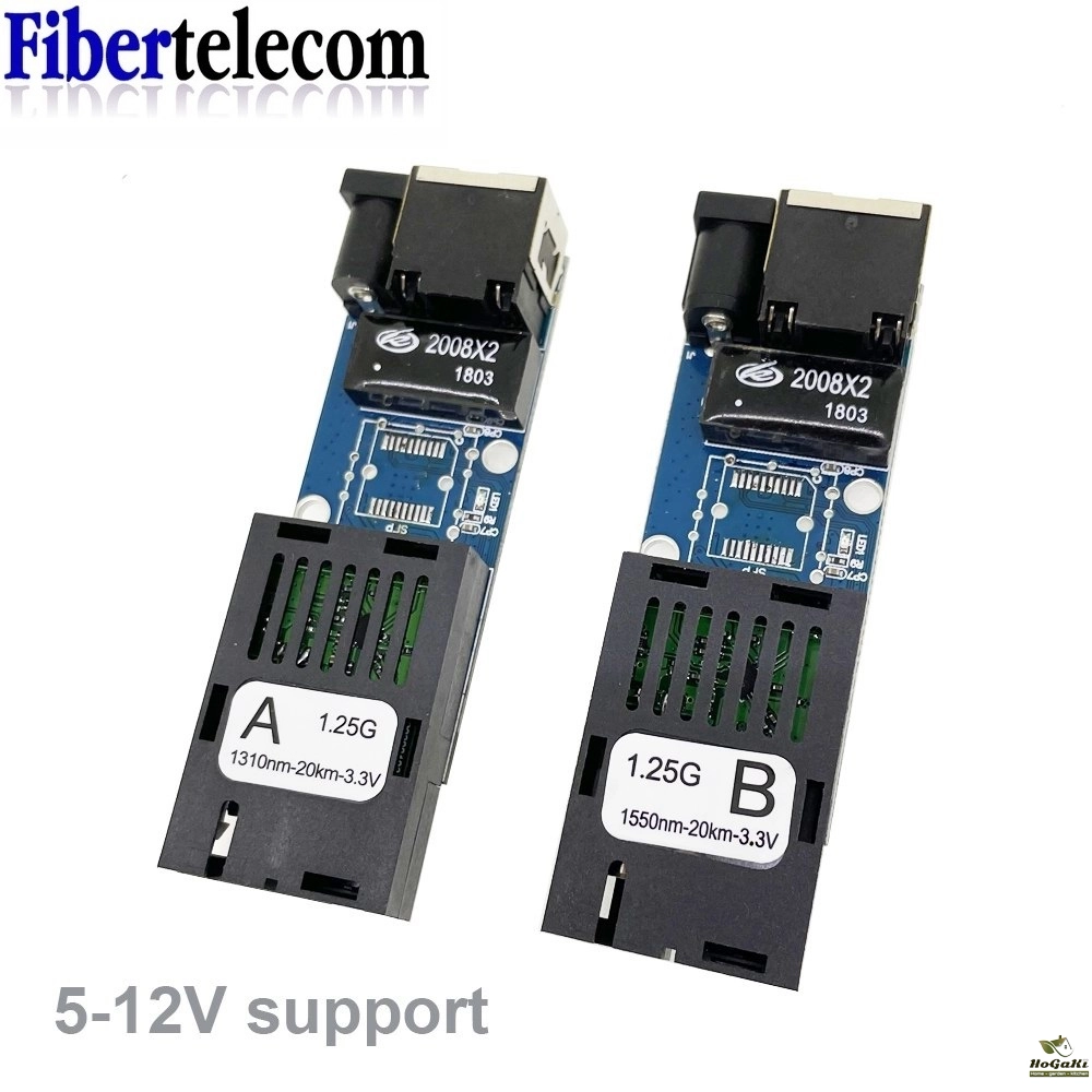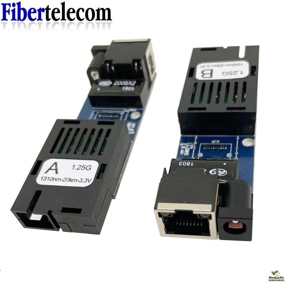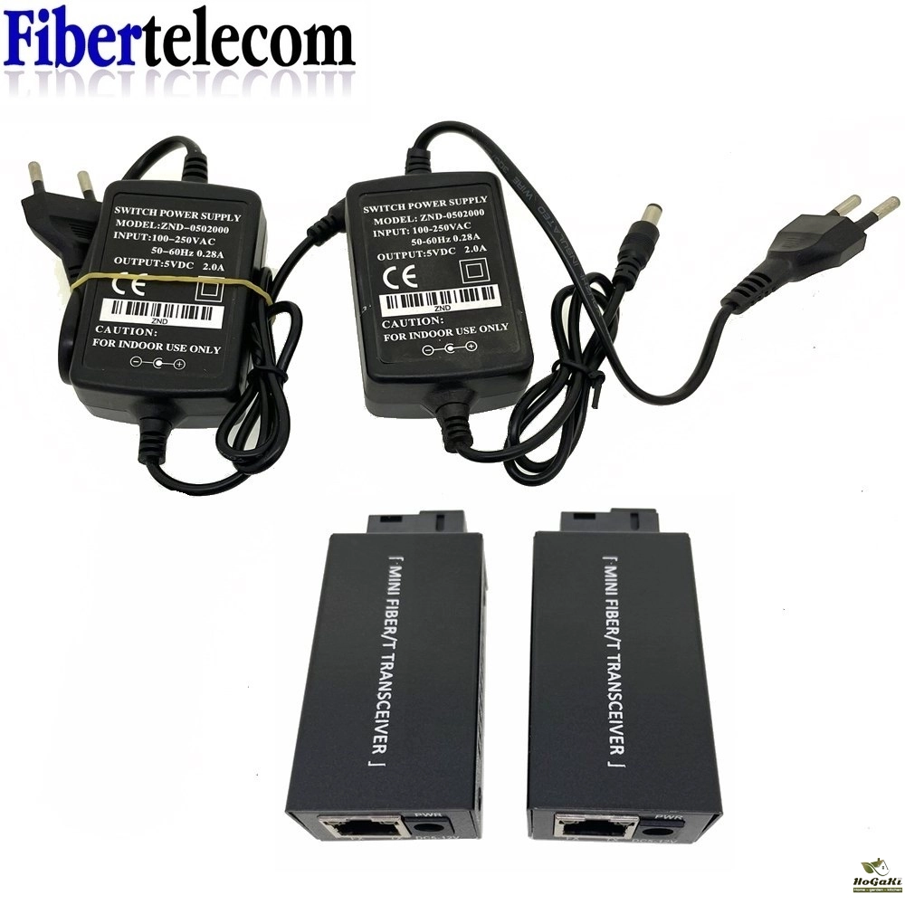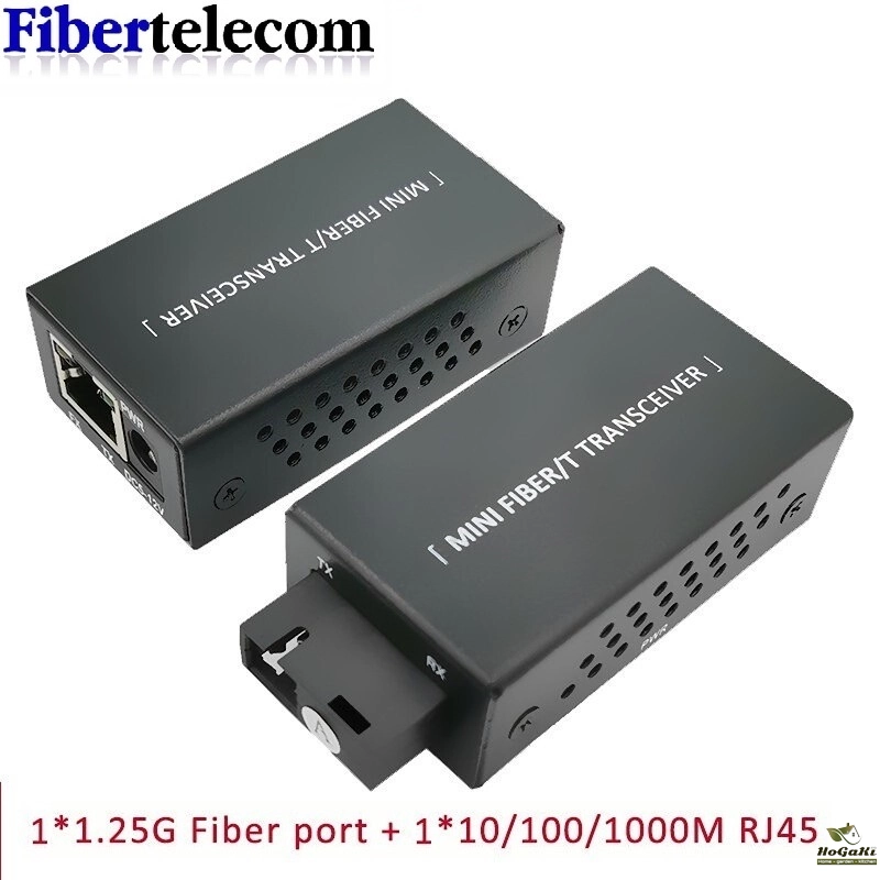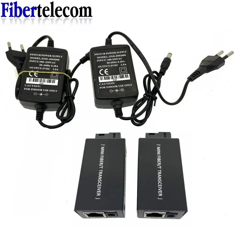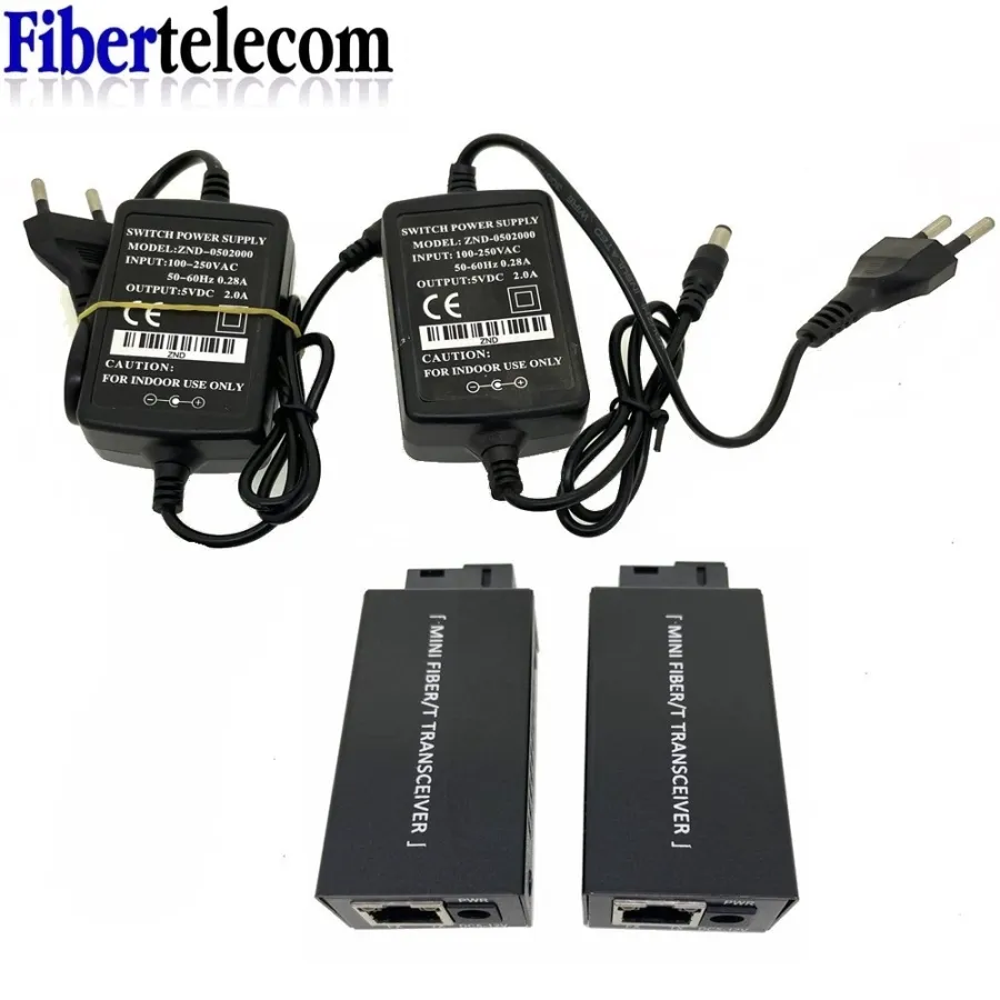 1Pair Mini Gigabit Fiber Optical Media Converter 100/1000Mbps Optic Transceiver SC to RJ45 Ethernet Switch 20Km With US Power