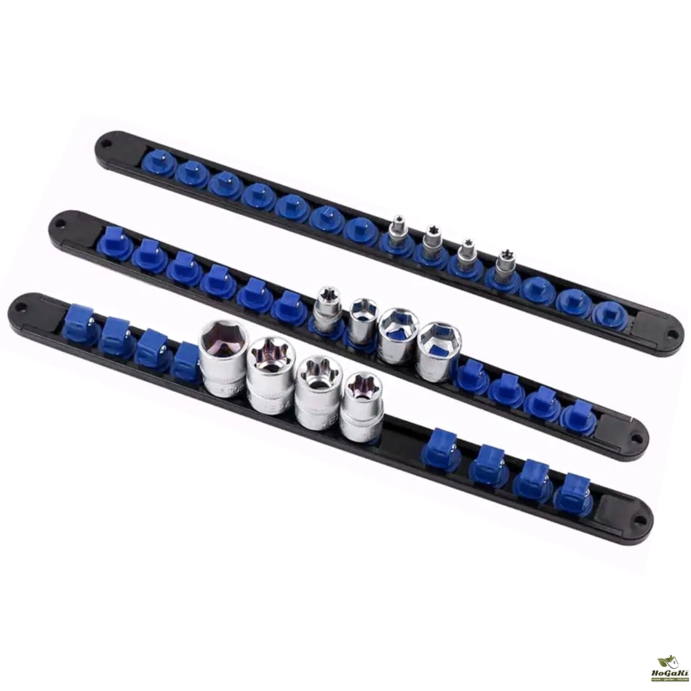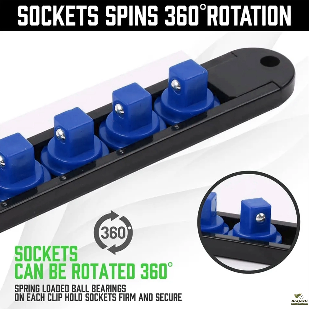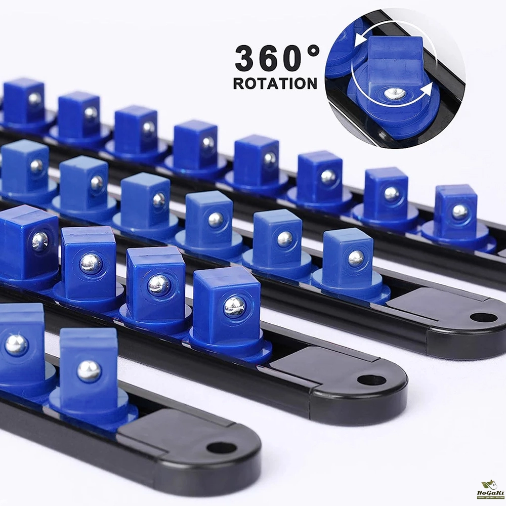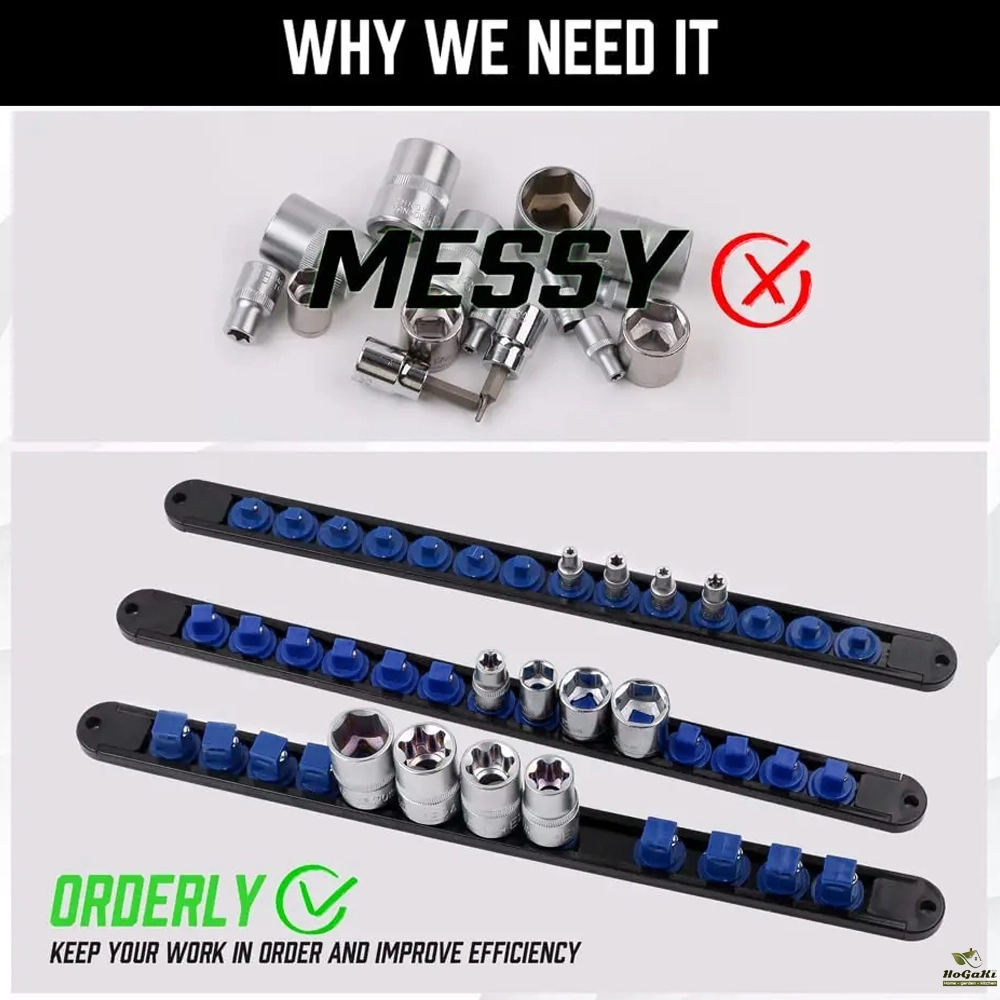 2. Easy to organize: Manage your tools easily with this socket organizer. It can be easily organized in your toolbox, mounted vertically or horizontally on the wall, placed on a workbench or stored in a drawer.
