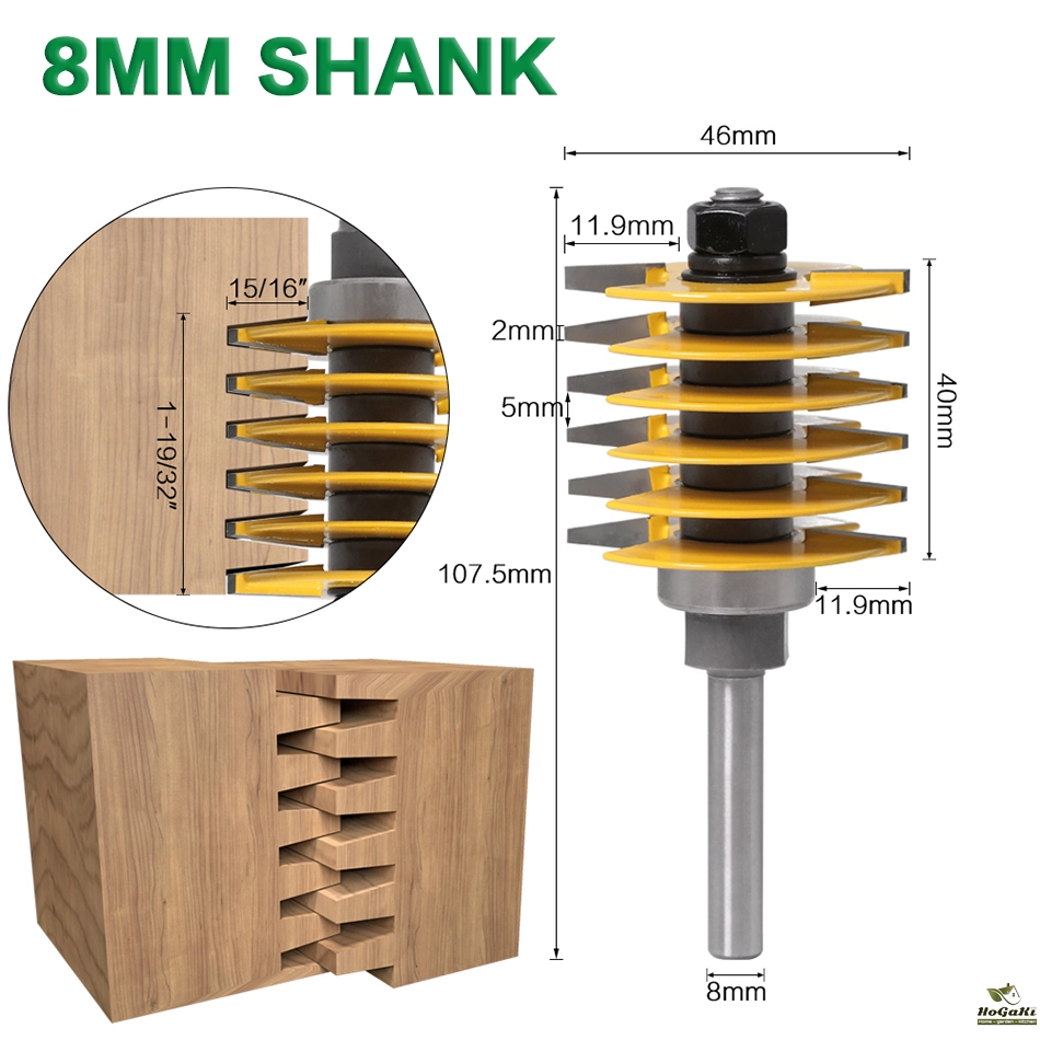 1pc 8mm Shank12mm skank Brand New 2 Teeth Adjustable Finger Joint Router Bit Tenon Cutter Industrial Grade for Wood Tool