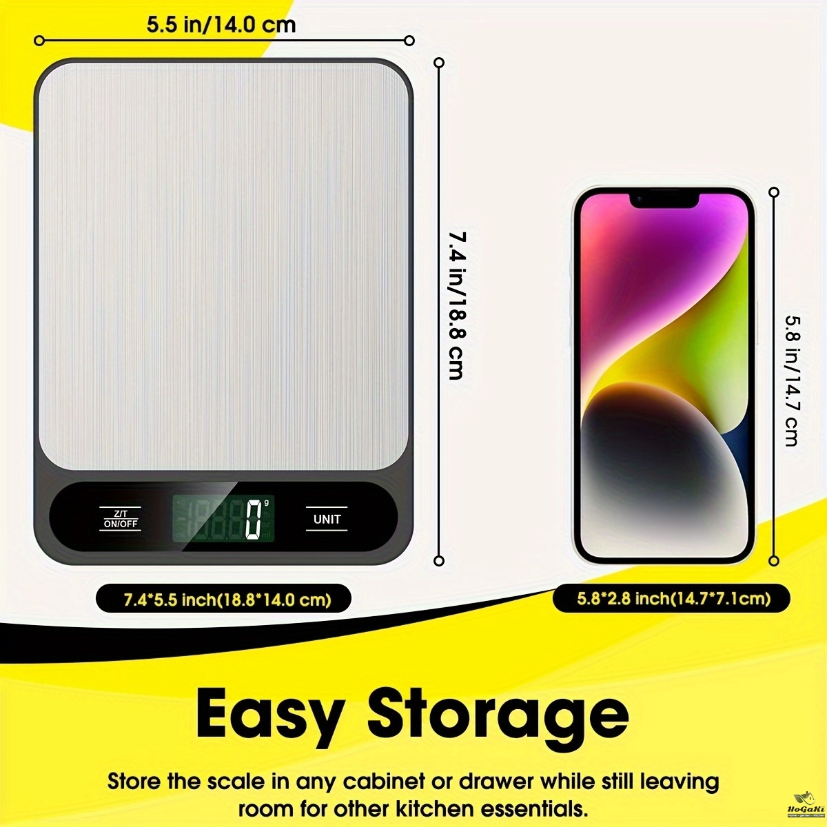 【Compact Sleek】The kitchen scale is designed with food-grade 304 stainless-steel platform for easy cleaning and maintenance. The food scale’s convenient size design make it easy to store in your kitchen.
