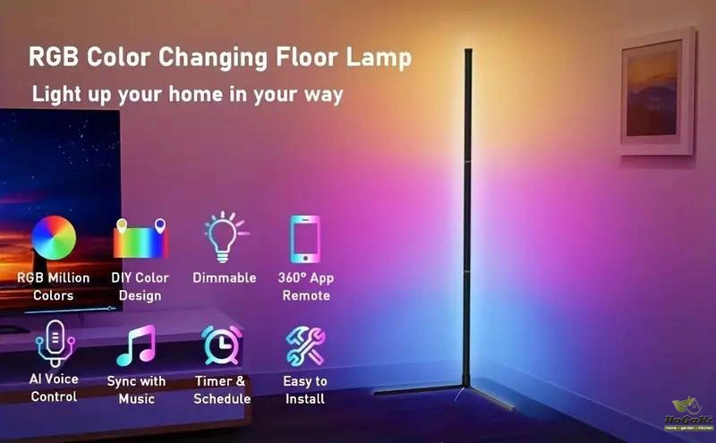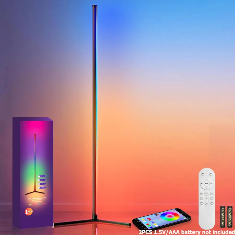 Specification: 155cm Bluetooth (61.05in high) intelligent corner floor lamp with dimmable RGB LED modern ambient lighting, suitable for placement in bedrooms, gaming rooms, living rooms, corners