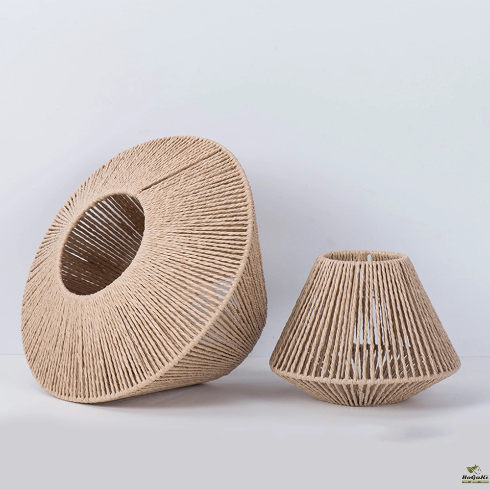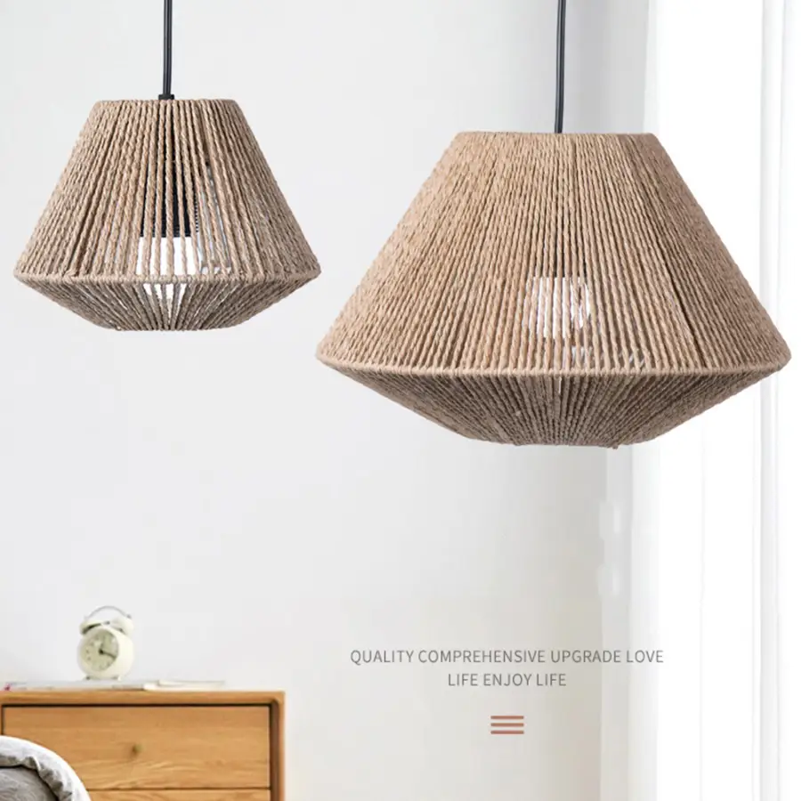 1pc Rattan Lamp Geometric Shade Light Cover Chandelier Hanging Wicker Woven Fixture Rustic Decorative Weave Basket
