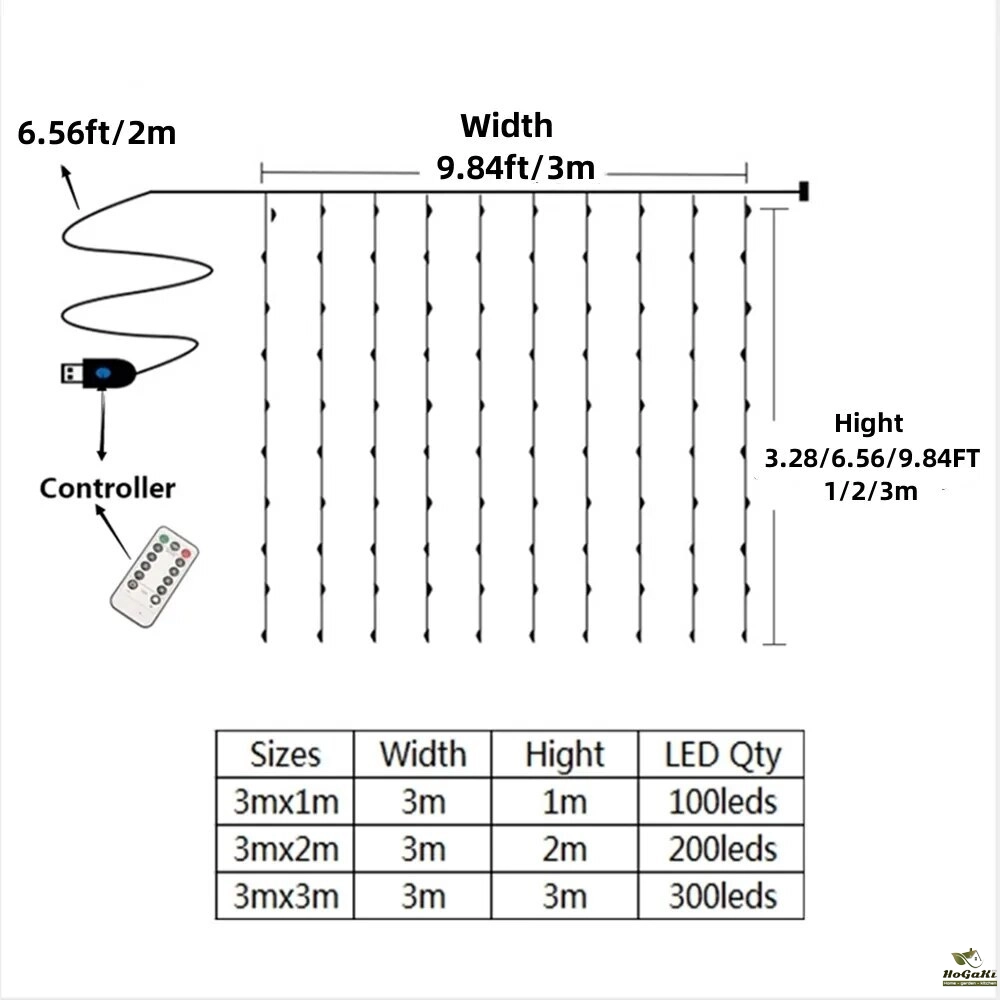 1pc USB 3x3/3*2/3*1 LED Curtain Bedroom Lights Christmas Garland Fairy Light Festoon Wedding Home Bedroom Decoration Lighting