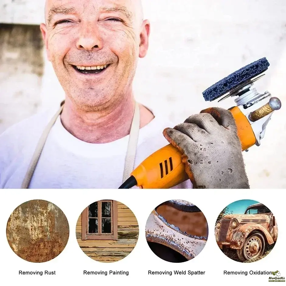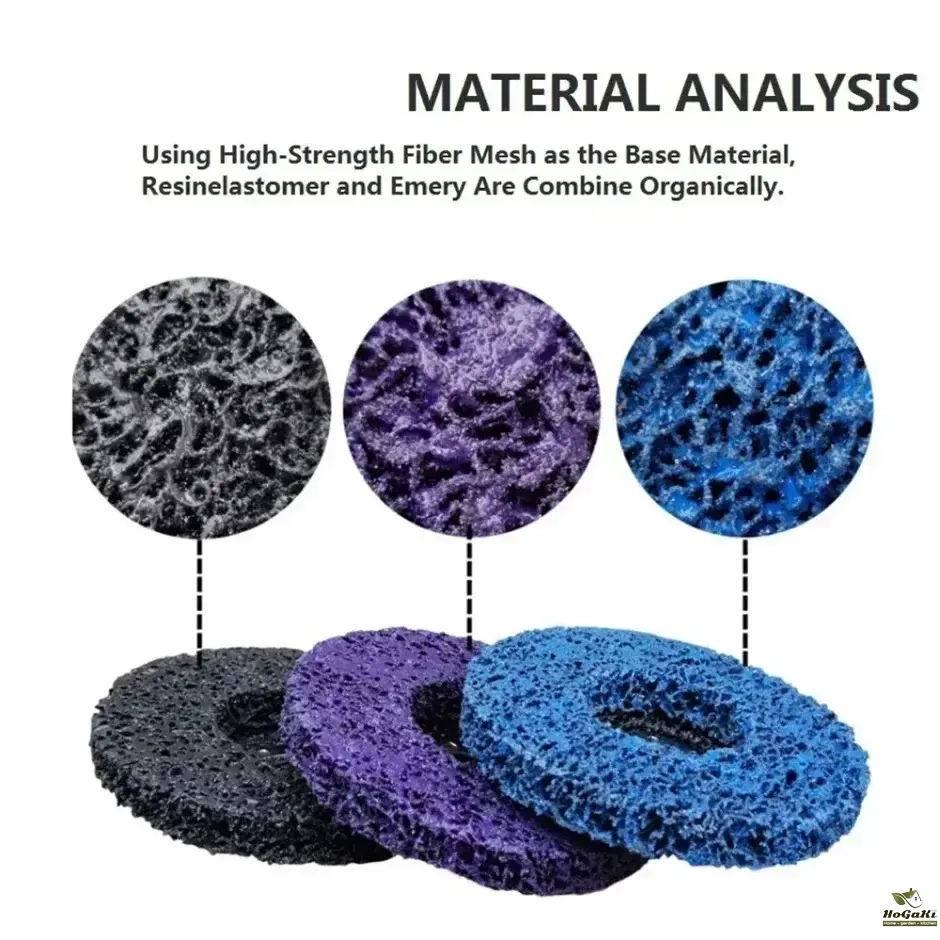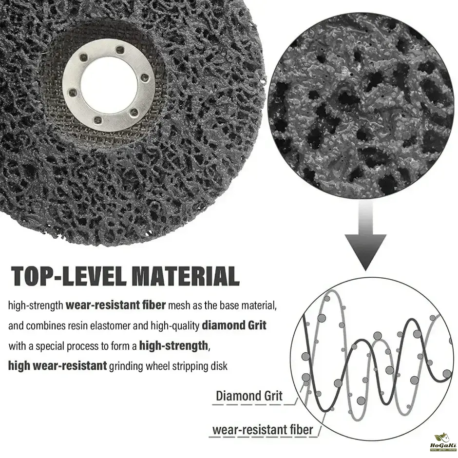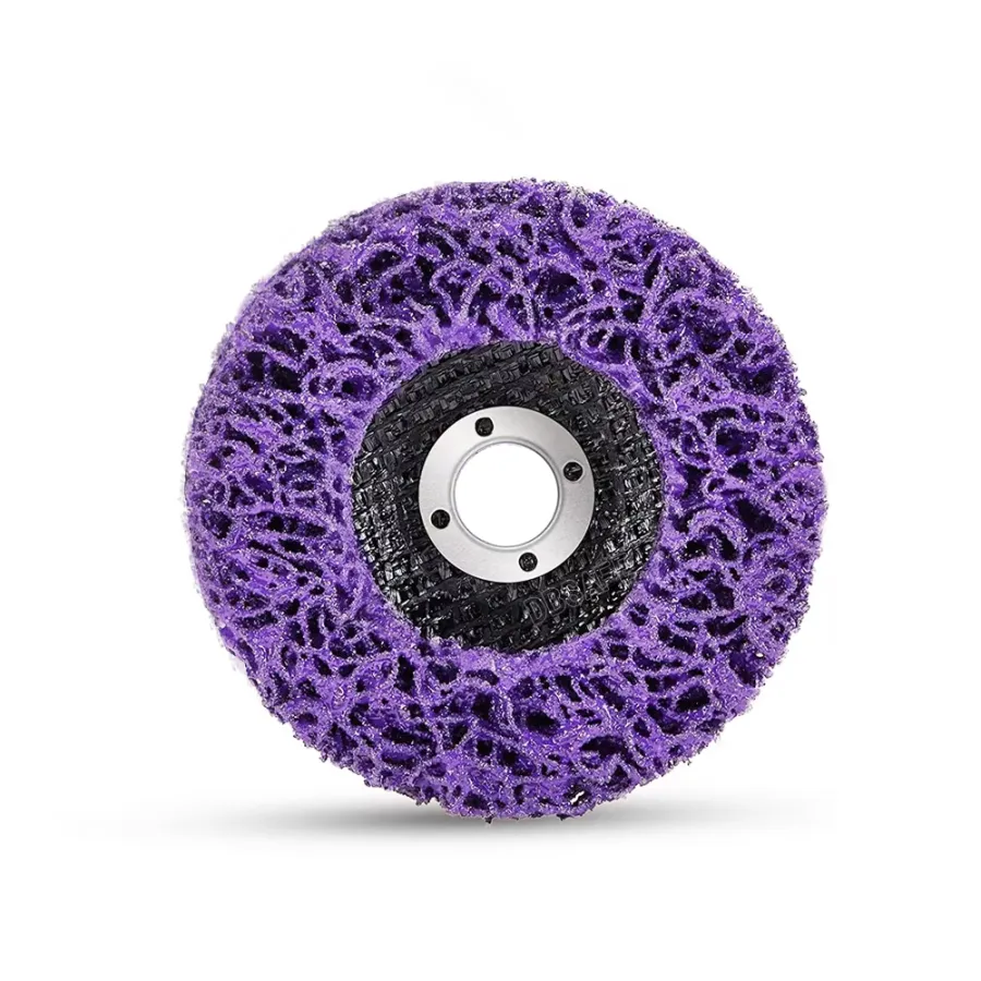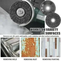 --The stripping disc is made of open nylon fibers with an extra diamond particle coating, which has the advantage of not cracking or cracking, making little sound and sparks, and can remove rust, oxides and corrosion without damage metal surface.