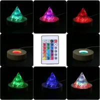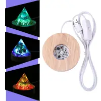 Natural Stone Orgonite Pyramid Crystal Wood Light Base Remote Control Wooden LED Night Light Stand Lamp Holder Lamp Home Decor