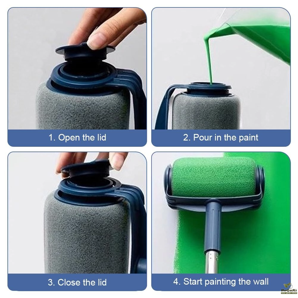 2.【FILLABLE DESIGN】The paint roller features a unique refillable paint design, close the lid tightly after adding, no leaks, no need to dip paint repeatedly, no need to stop painting the wall, no drips or splashes, no mess.