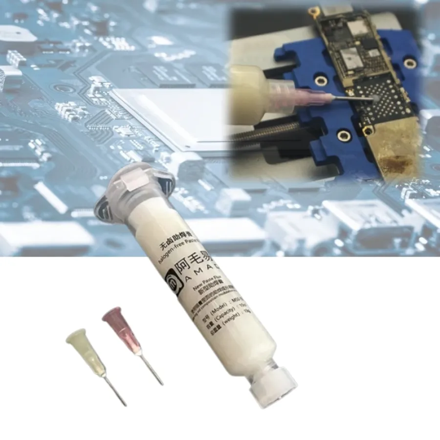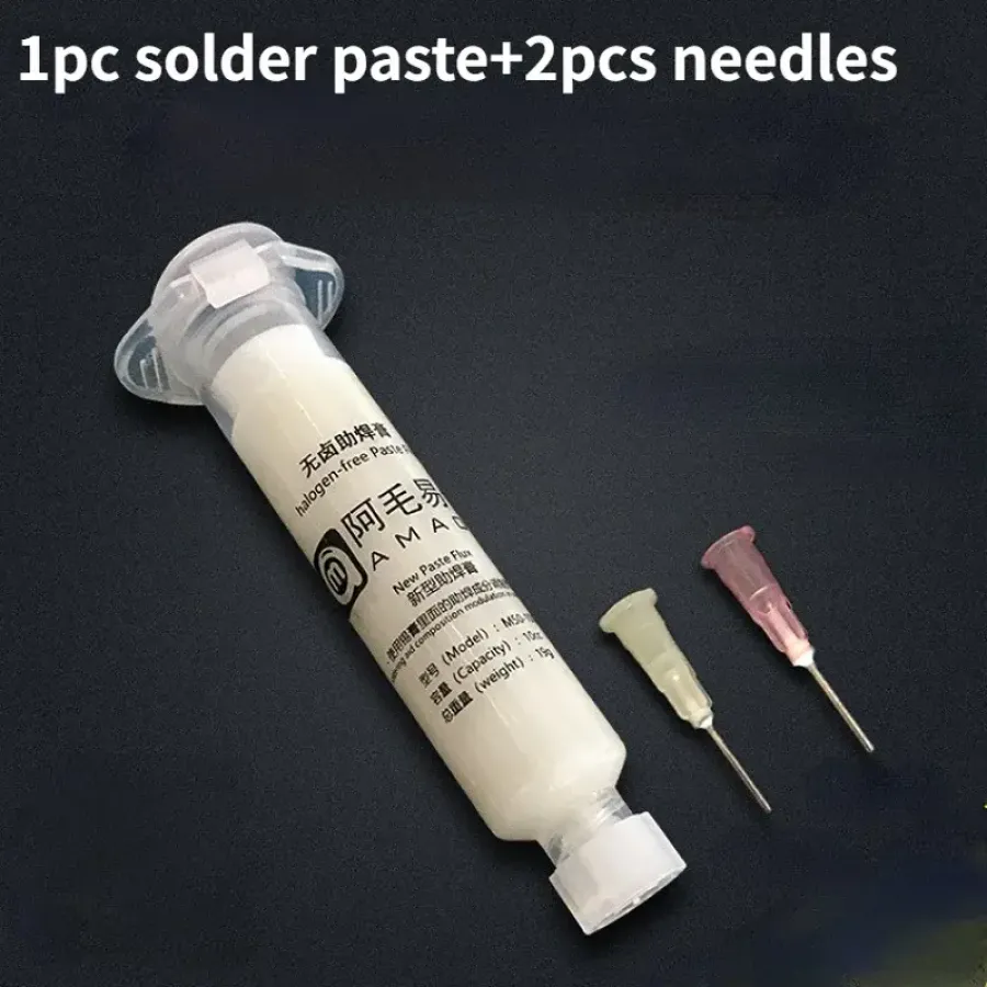 1PCS Solder Paste AMAOE Halogen-Free Welding Oil Flux for PCB BGA Reballing Repair Soldering Paste with 2pcs Syringe Needles Tool