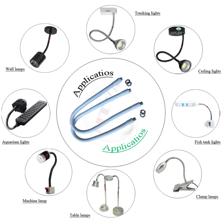 LED gooseneck silicone metal hose Dia 8mm / 10mm bendable shaping universal soft tube For table lamp spotlight floor lamp