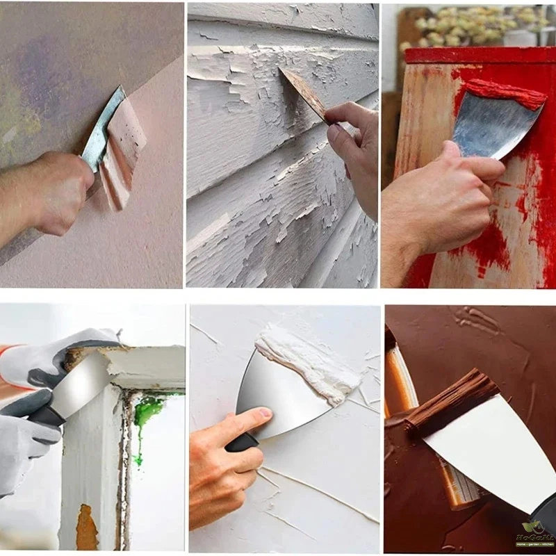 Putty knives, also commonly known as "putty knives", are used in a variety of construction trades to scrape surfaces or lay down materials such as plaster and putty, as well as to repair cracks, fill holes, scrape paint, apply mortar to walls, and remove wallpaper.