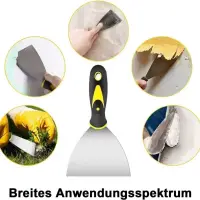 Putty knives, also commonly known as "putty knives", are used in a variety of construction trades to scrape surfaces or lay down materials such as plaster and putty, as well as to repair cracks, fill holes, scrape paint, apply mortar to walls, and remove wallpaper.