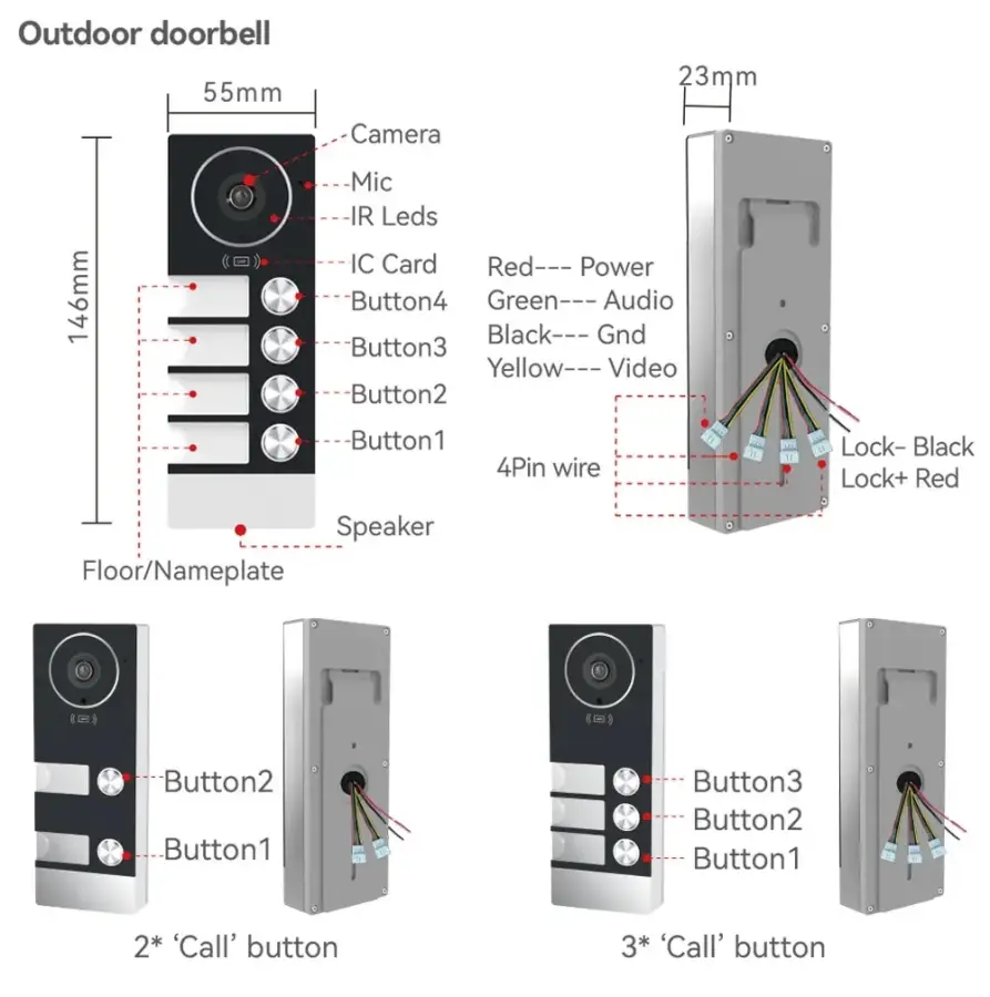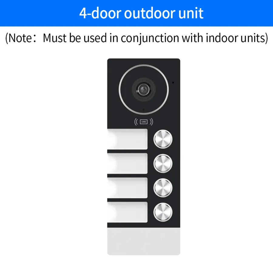 for 2,3,4 apartments(If you are an 8-family apartment Building, then you should purchase two pieces 4-family outdoor units doorbell and 8 pieces indoor units monitor screen )