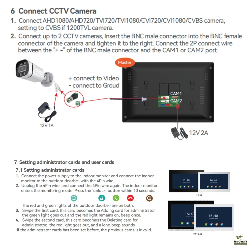 Connect:Each button connect up to 6 indoor monitors,each monitor connect up to 2 CCTV cameras(BTW, it supports Hikvision cameras).