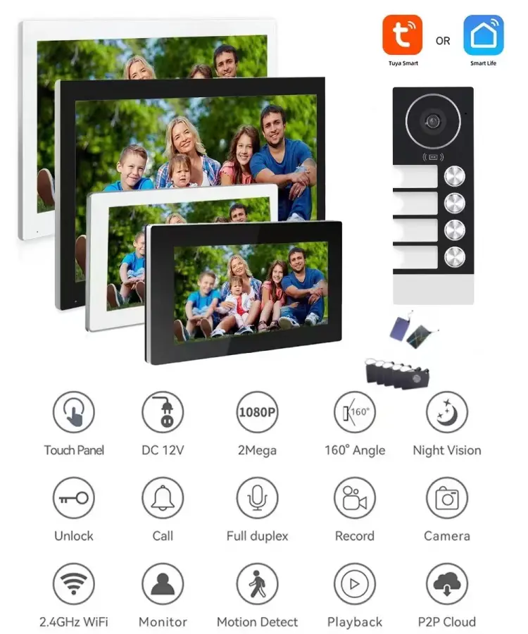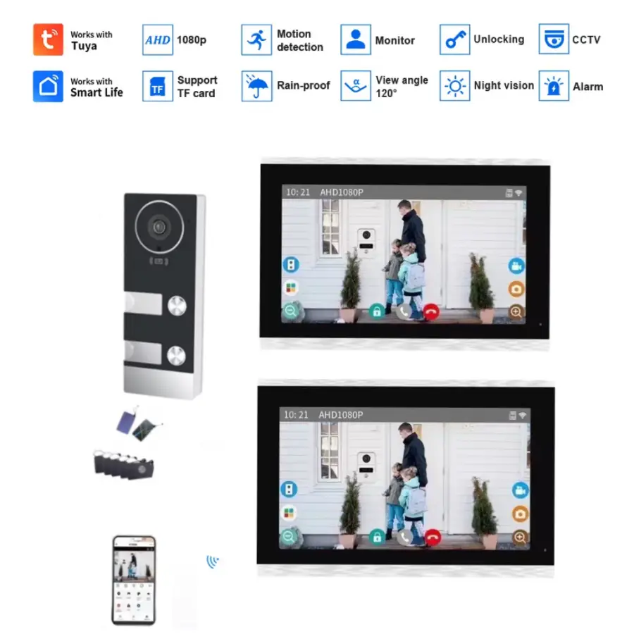 2/3/4 Multifamily TUYA WiFi Video Doorphone Building Intercom Kits 7/10 Inch Screen Monitor Door Bell APP Card Unlock Apartment