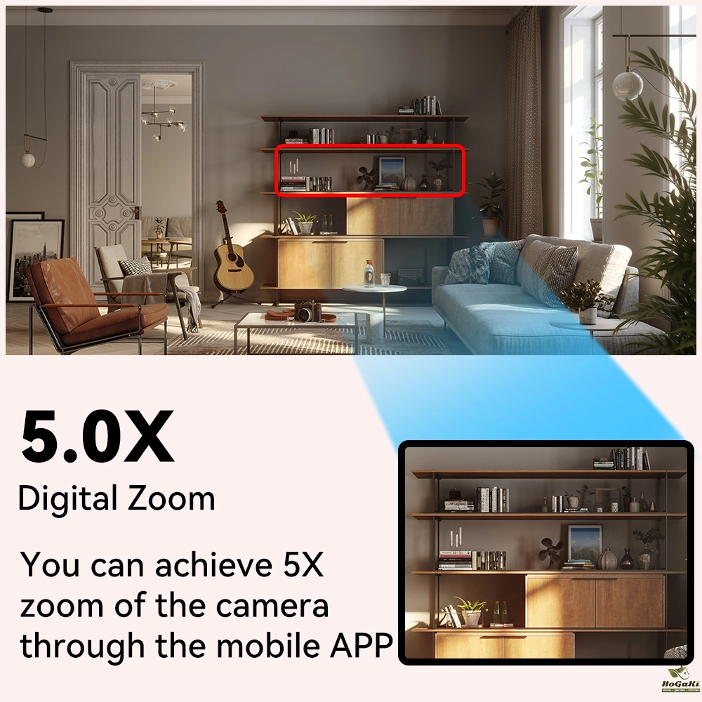 ✅This camera employs digital zoom technology. It allows you to get a closer view of subjects by enlarging the image center up to five times. Please note that, as with all digital zoom, extreme magnification may result in a gradual loss of image sharpness compared to the original wide-angle view. It is most effective for getting a better look at details within a medium range.