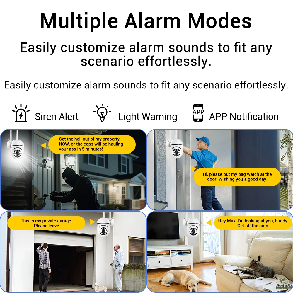 ✅Supports over 30 built-in alarm tones plus custom audio uploads (e.g., voice warnings). Paired with a bright white strobe light, it delivers a powerful deterrent against intruders.