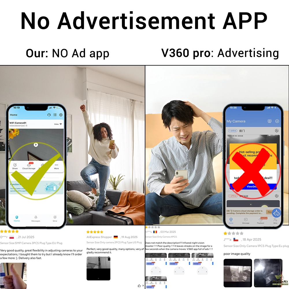 ✅Smart Alerts: Reduces false triggers by ignoring animals/vehicles—focuses only on human movement. (Suggestion: Capture app screenshots in English mode to showcase professional UI/UX.)