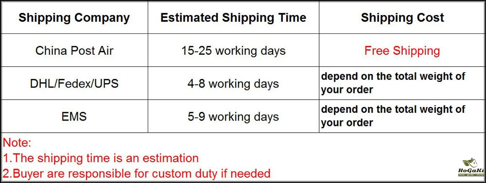 Packages from our warehouse in China will be shipped by ePacket or EMS depending on the weight and size of the product. Packages shipped from our US warehouse are shipped through USPS.