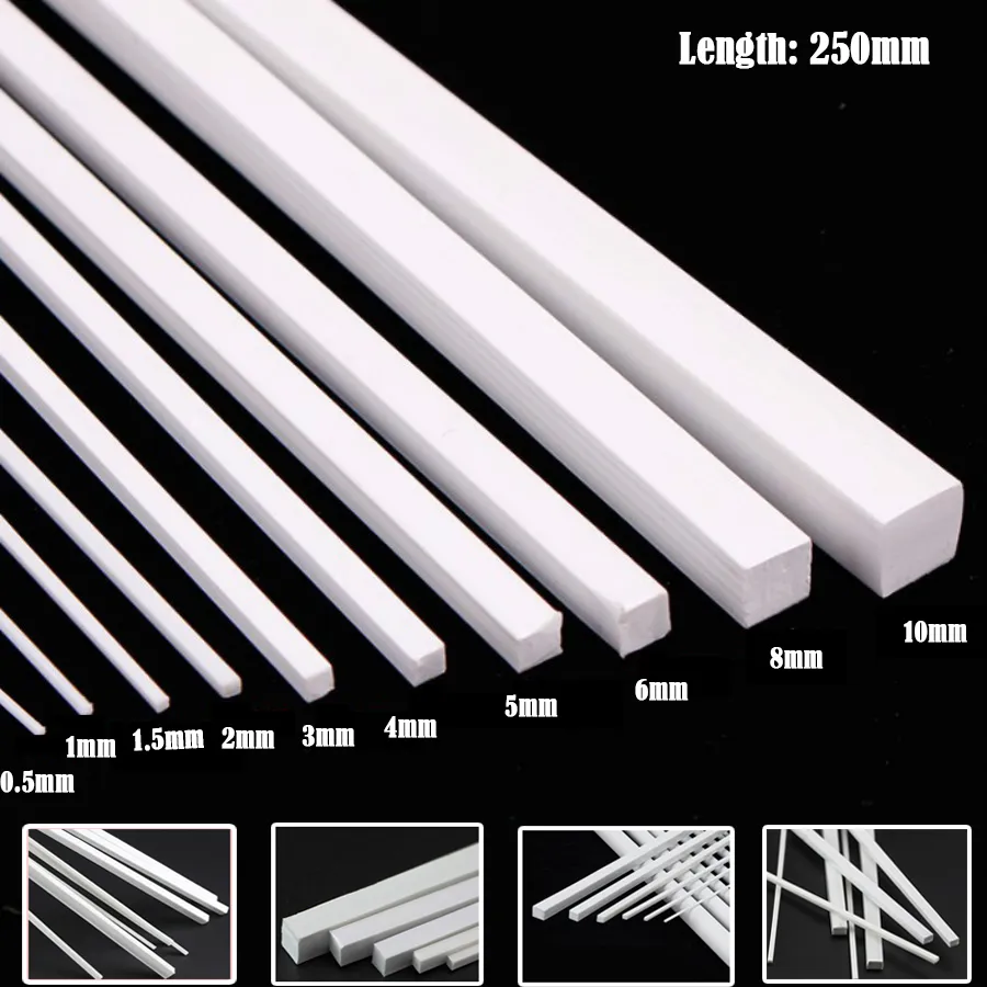 50/10pcs ABS Plastic Square Tube Hollow Square Bar Rods Styrene Rod for DIY Sand Table Architectural Model Making