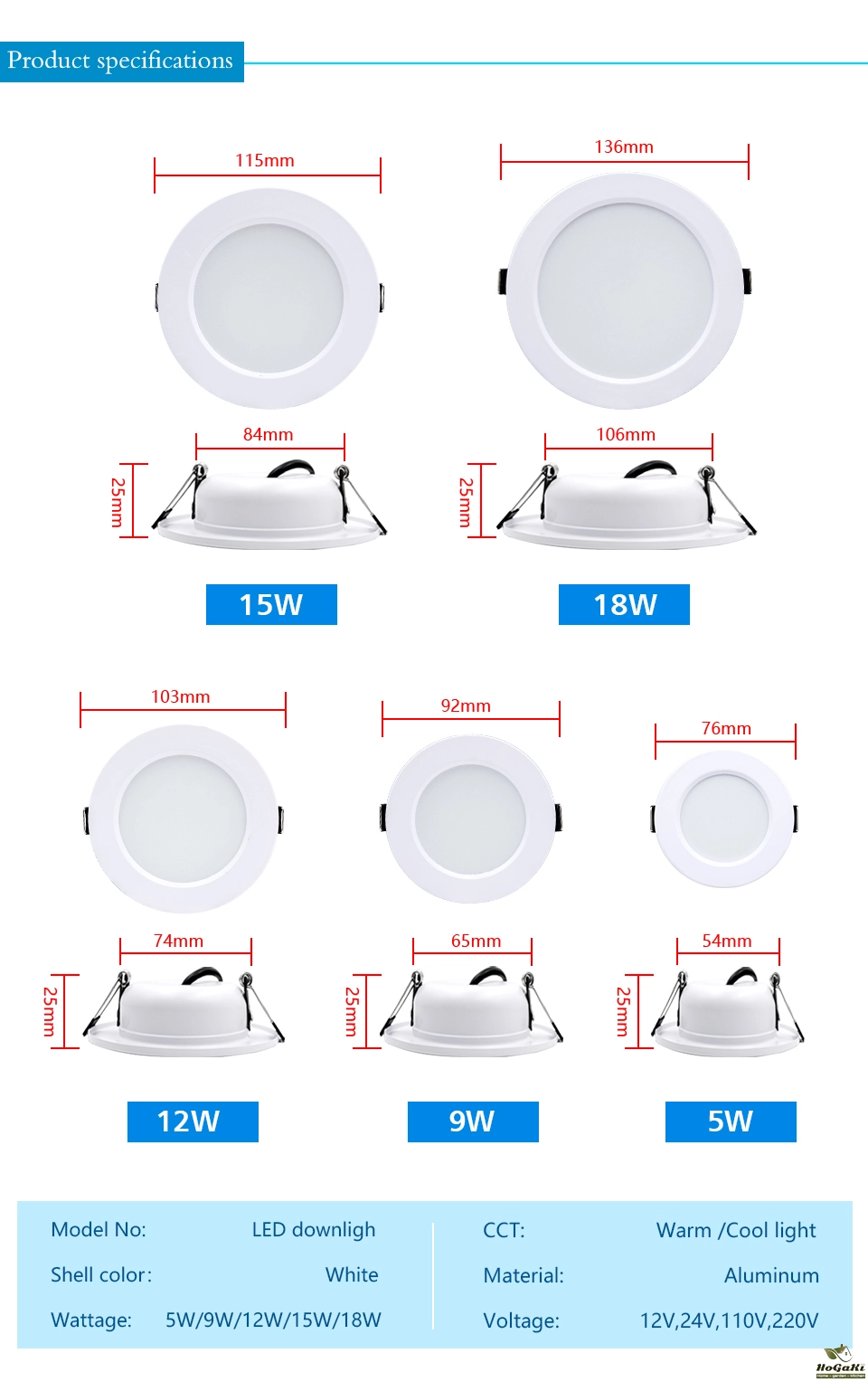 LED Downlight Ceiling DC12V 24V AC110V 220V 5W 9W 12W 15W 18W Spotlight Cold Warm White Round Recessed Led Spot Light Lighting