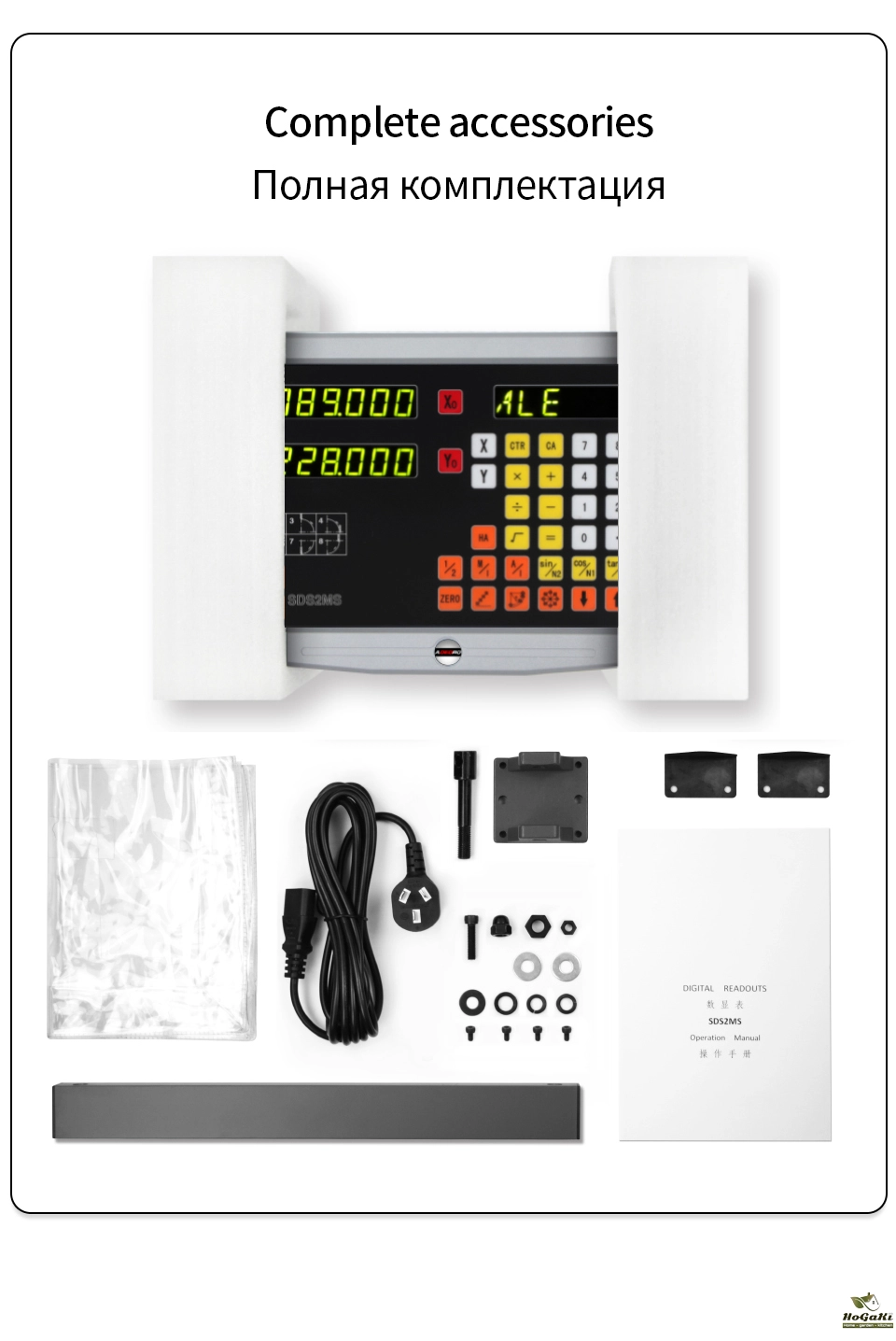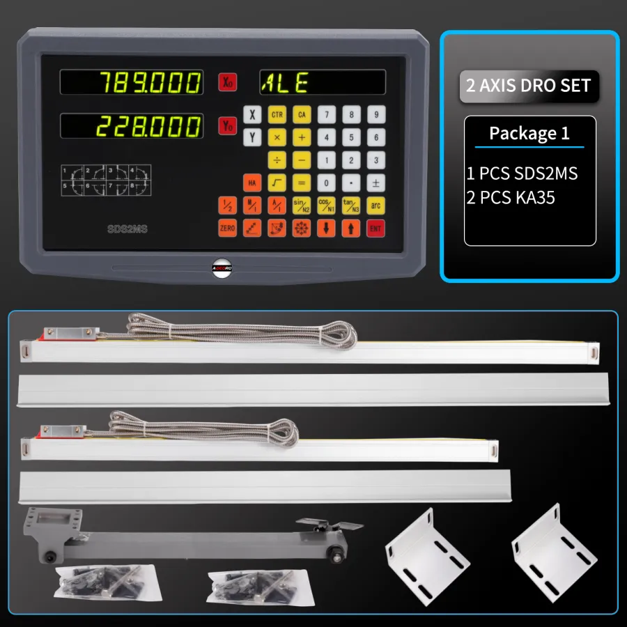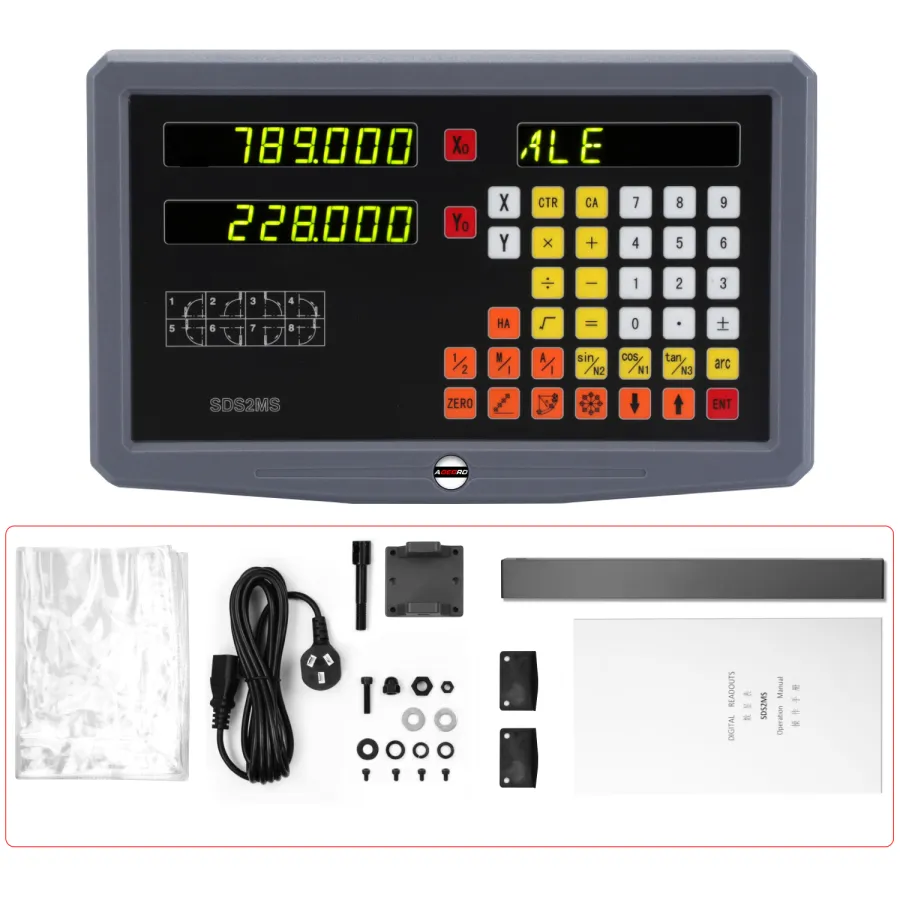 1 piece 2 Axis LED DRO, user manual, mounting bracket, power cable, screw bag