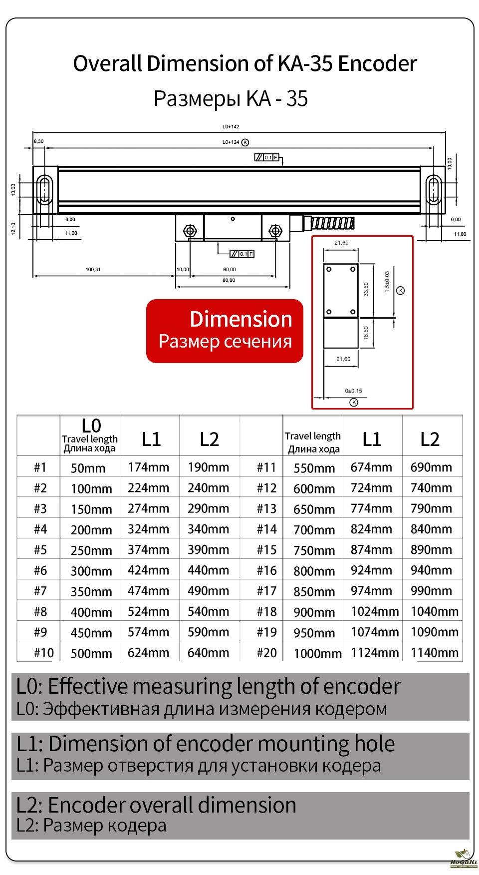 2 pieces 0.005mm Sino KA35 scales, scale covers, mounting brackets & screw bags【Travel length can be freely selected within 50mm~1000mm】