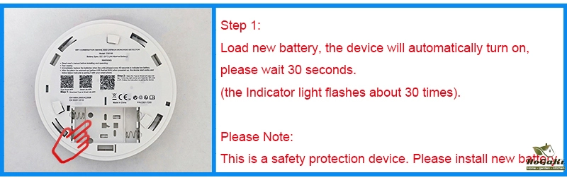 When the device is abnormal in use, please try to replace another brand of new battery first, because the smoke sensor is a low-power device, it will be sensitive to battery voltage. According to the feedback of most users, the cause of the battery is more than 90%. After installing the new battery, wait 30 seconds, then press the device once to let it automatically check all functions.