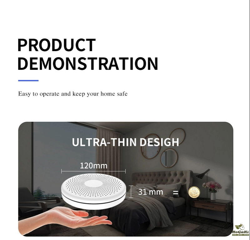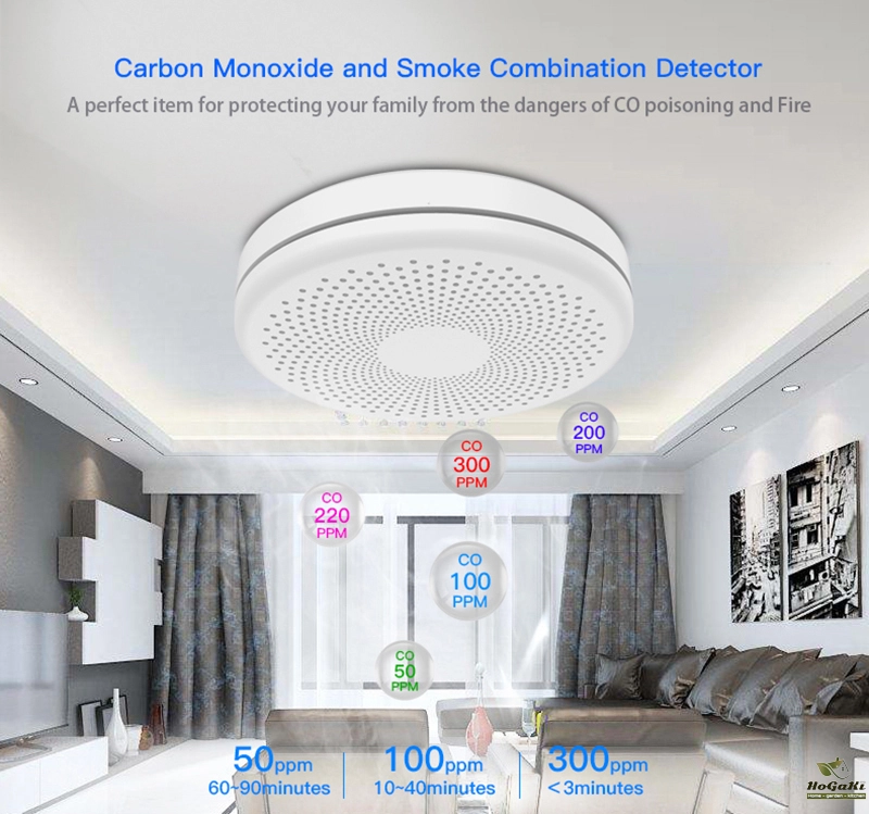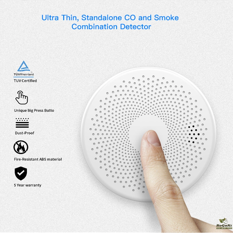 This product is a smart carbon monoxide and smoke combo detector, adopting microprocessor control. The electrochemical carbon monoxide sensor is stable and reliable with low current consumption and small sensitivity drift.