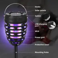 Solar Bug Zapper 4500V Electric Mosquito Zapper Outdoor,USB-C and Solar Panel Dual Charging Electric Zapper Racket with UV Light