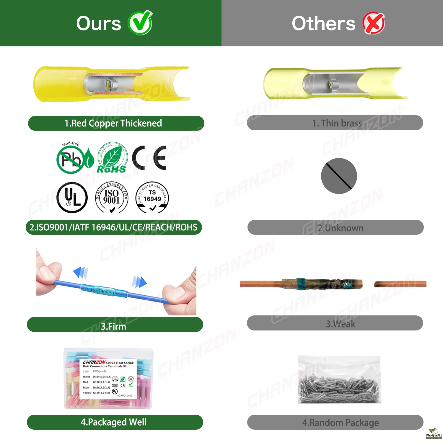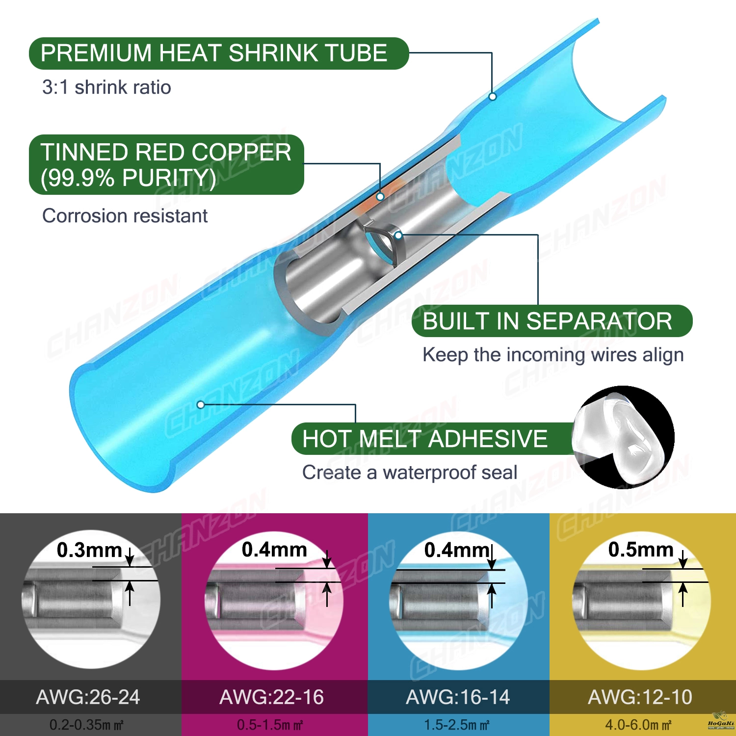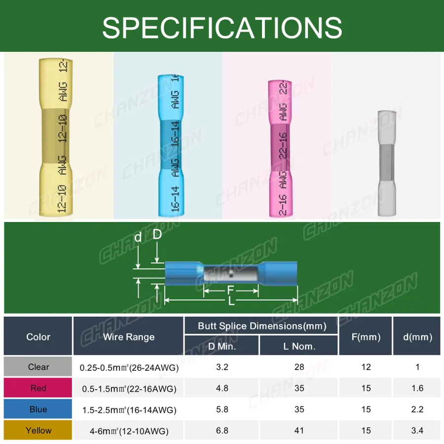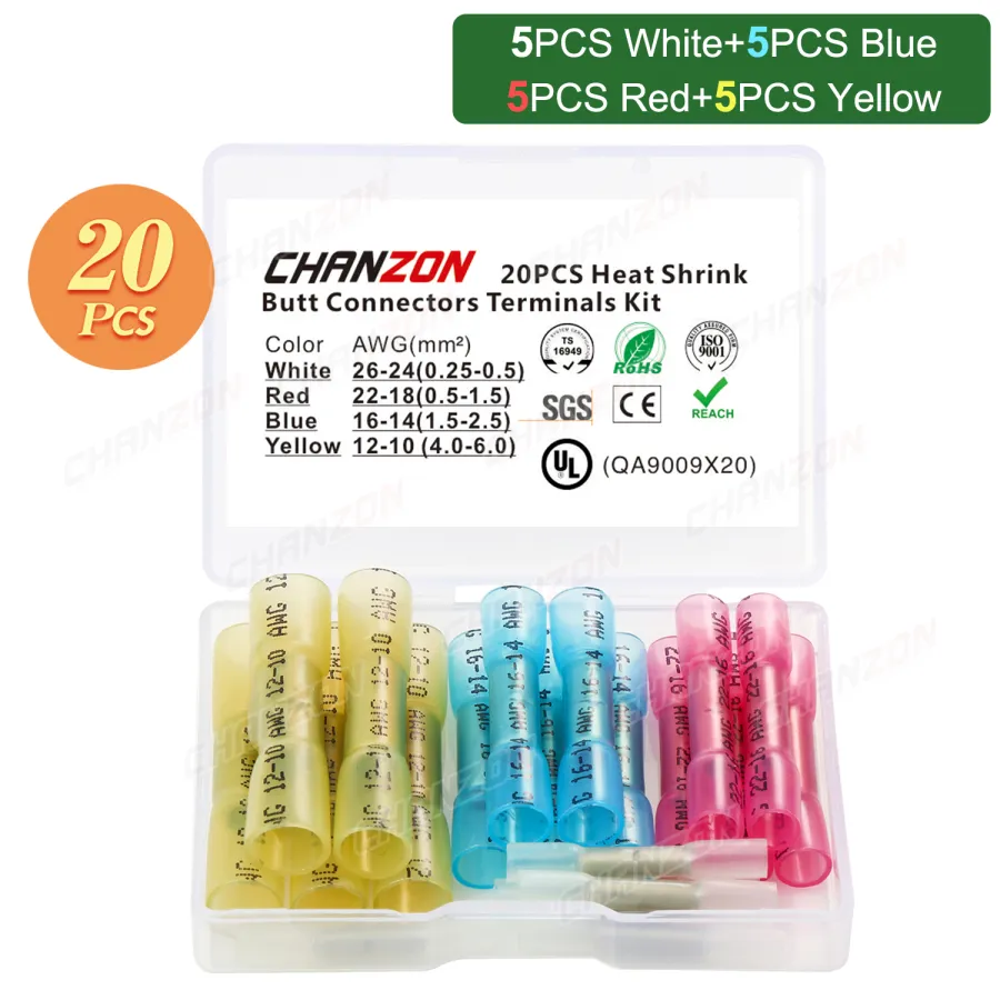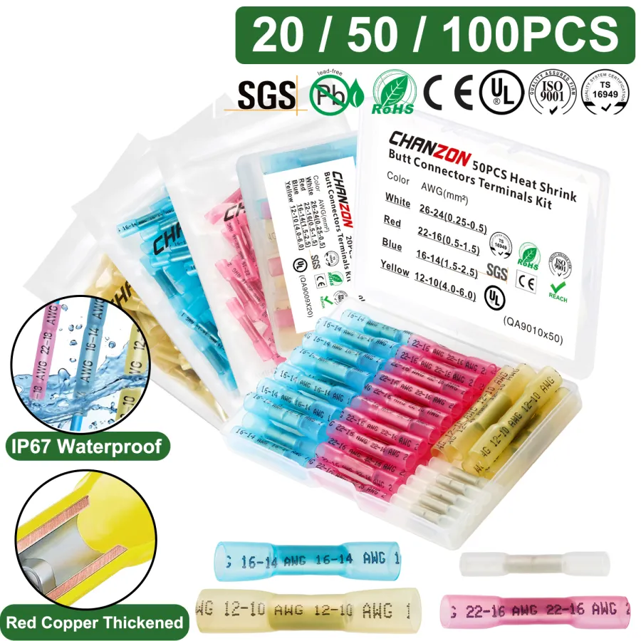 20/50/100PCS Heat Shrink Butt Wire Connectors Kit Waterproof Shrinkable Solder Crimp Splice Electrical Cable Joint Tube Terminal