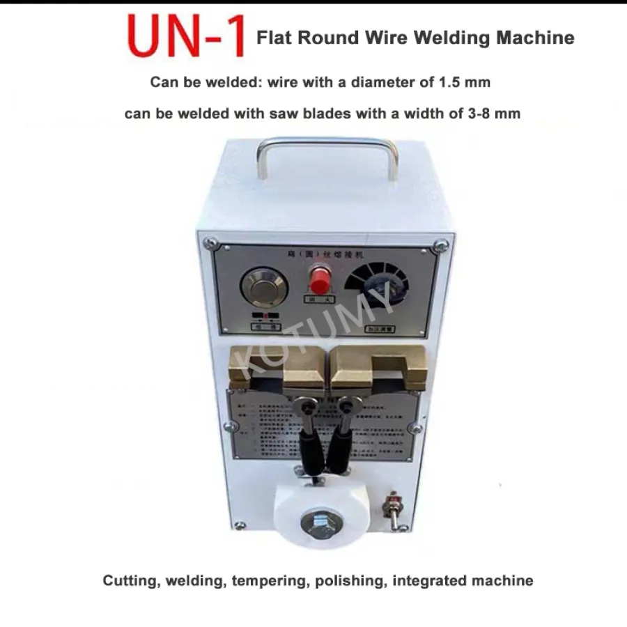 The UN-2 type impact welding machine is a new type of resistance welding machine that automatically opens and cools the welding circuit by pressing the switch. The whole machine has a compact structure and is equipped with complete equipment (including saw band scissors, grinding wheel, tempering switch, etc.). It has excellent performance, simple and convenient operation, fast welding without large force, firm welding joints, and strong tensile resistance after tempering. It can easily cut clothing materials into the desired appearance of the manufacturer, Convenient for manufacturers to make or process clothing, this product has been used by many manufacturers for many years and has received good feedback. It is the best equipment for welding cutting machines with saw blades and other thin sheet materials. Welcome to inquire and compare the products.