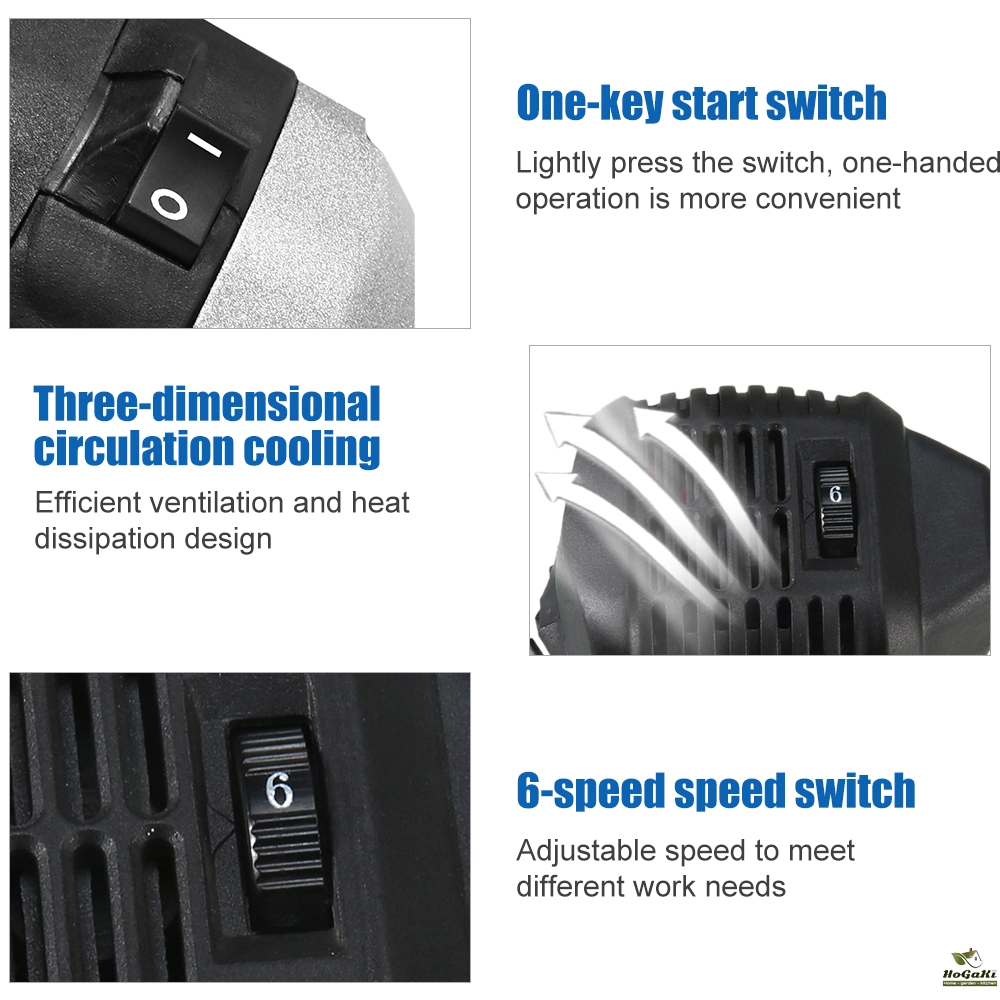 3. Equipped with 6.35mm and 8mm chucks, which can be used with different tools. The application is more extensive.