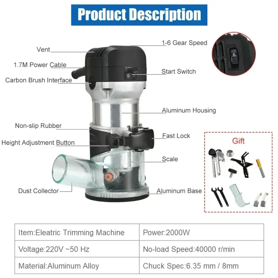 1 x 220V Electric Trimmer Wood Tool ( EU Plug / AU Adapter Plug / UK Adapter Plug Optional )
