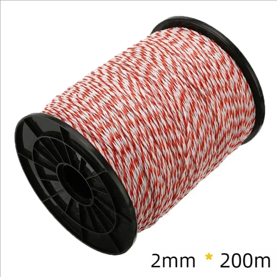200m/500m Roll Electric Fence Rope Red White Polywire with Steel Poly Rope for Horse Animal Fencing Ultra Low Resistance Wire