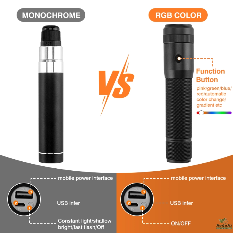 2. There are two models of monochrome and RGB, the battery capacity is different, monochrome 1200mAH, RGB2200mAH