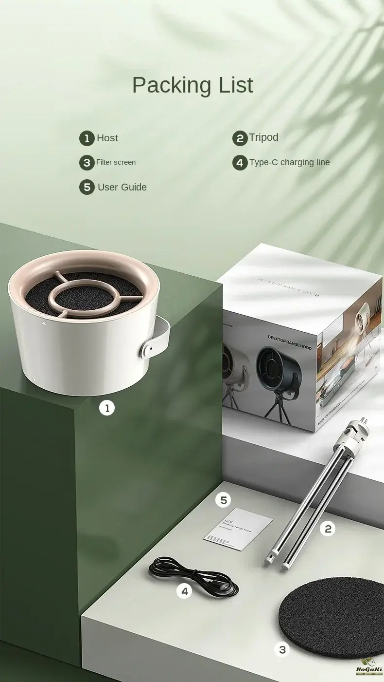 2. This Desktop Range hood is USB Power supply, need to connect to a 5V/2A plug to use, it does not built-in Battery.