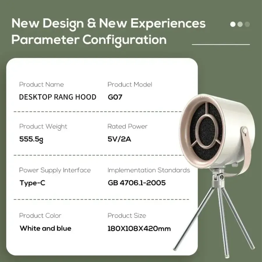 2. This Desktop Range hood is USB Power supply, need to connect to a 5V/2A plug to use, it does not built-in Battery.