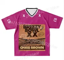 Men's Women's Short Sleeve Casual Sport V-neck Plus Size Chris Brown Breezy Bowl Tour Jersey T-shirt Tops Tee Fan Gift