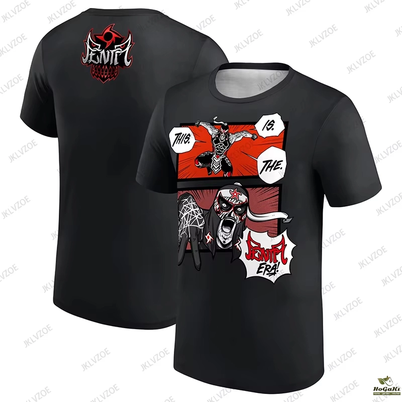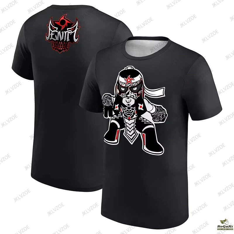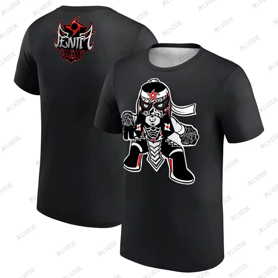 2025 Summer New Men's and Women's Black Penta Cartoon T-Shirt Short Sleeve Tees WWE Fighting Boxing Sports Adult Tops