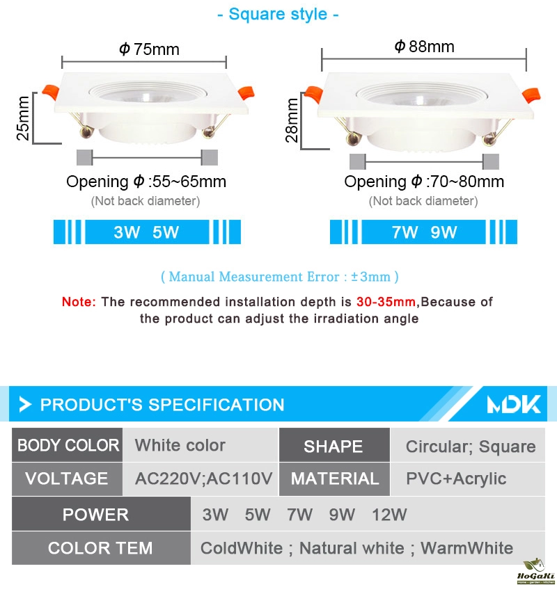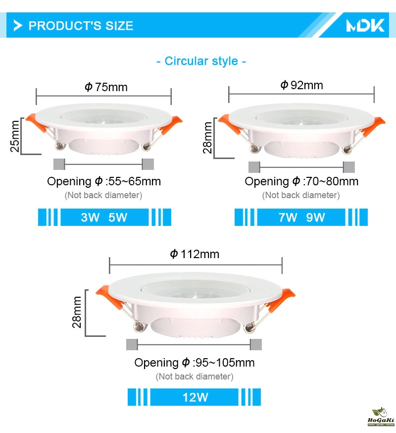 Power :3W 5W 7W 9W 12W