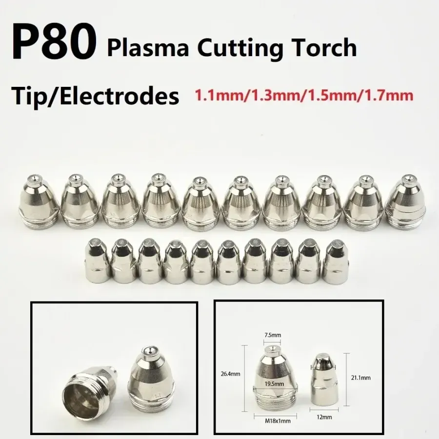 This Torch Consumables are compatible with P80 Plasma Cutting Torch and similar copies; And it is suitable for Plasma Cutting Machine CUT-70 CUT-80 CUT-100 CUT-120.