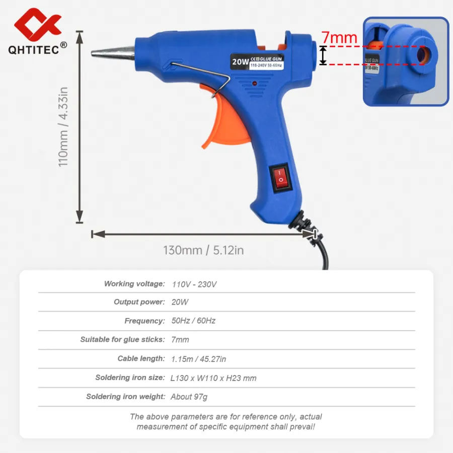 20W Hot Silicone Gun Melt Glue With 7mm Glue Sticks Mini Industrial Guns Household Heat Temperature Thermo for DIY Crafts Arts