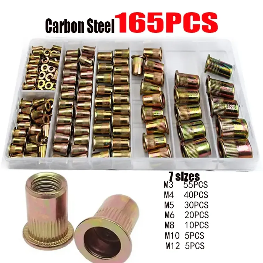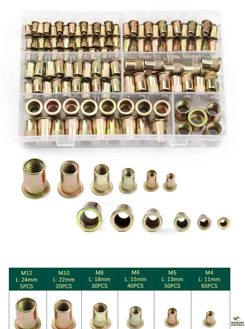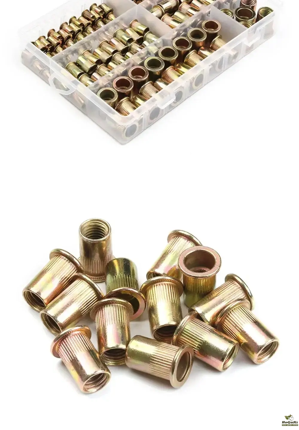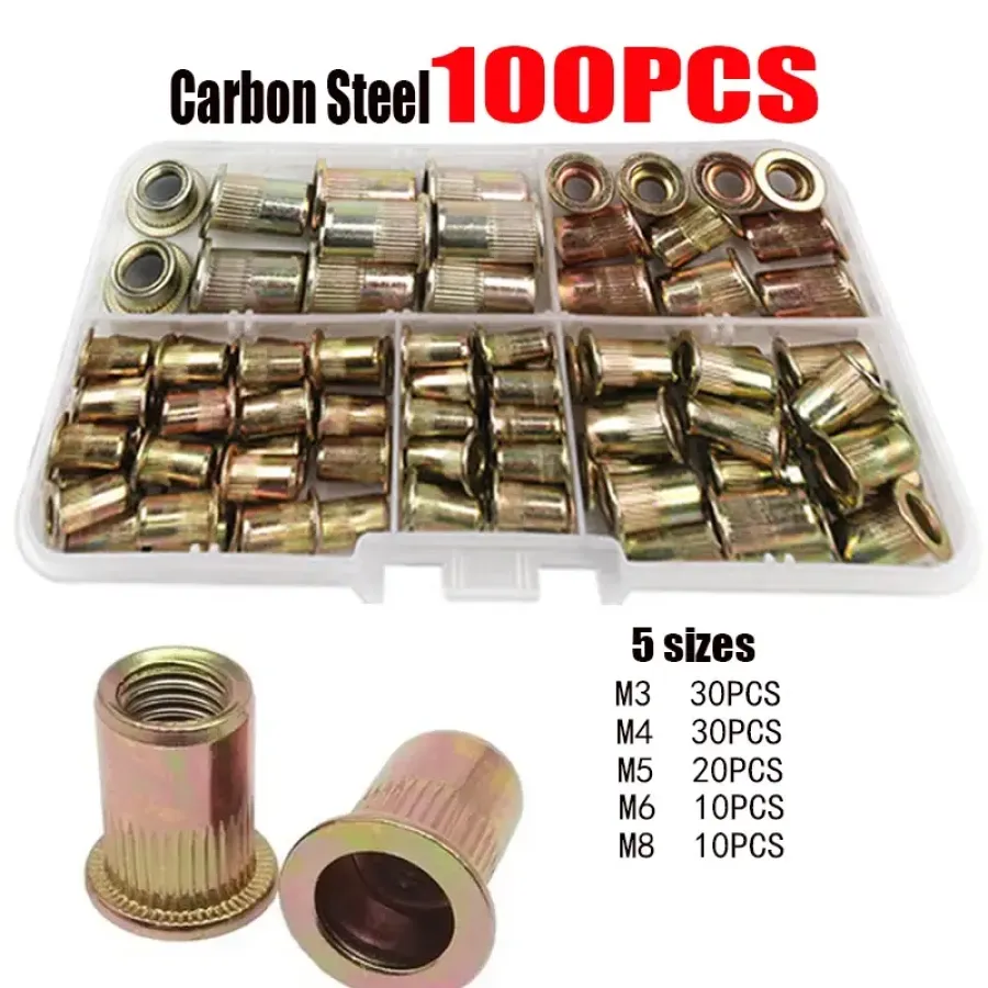 210/165/100PCS Box Carbon Steel Rivet Nuts M4 M5 M6 M8 M10 M12 Flat Head Rivet Nuts Set Hardware Parts Multi Sizes Insert Rivet Nuts