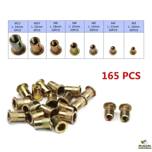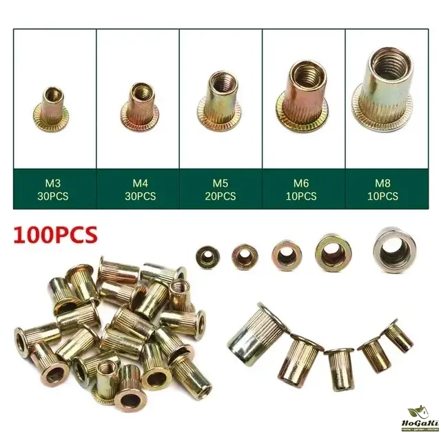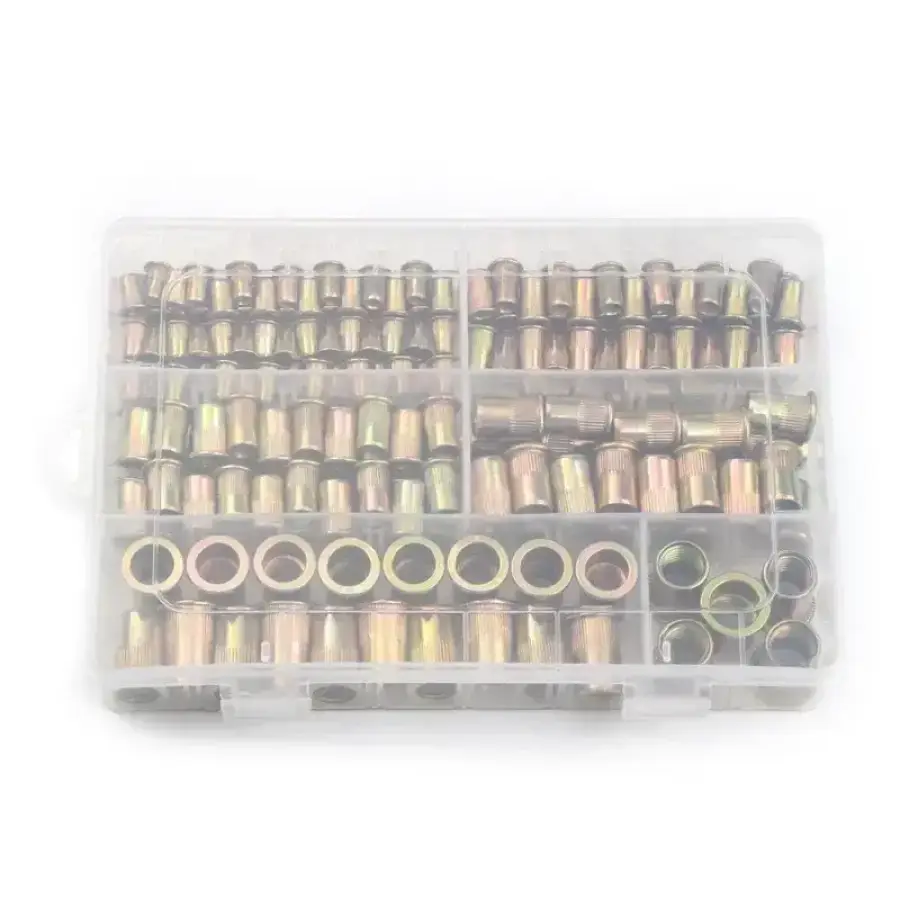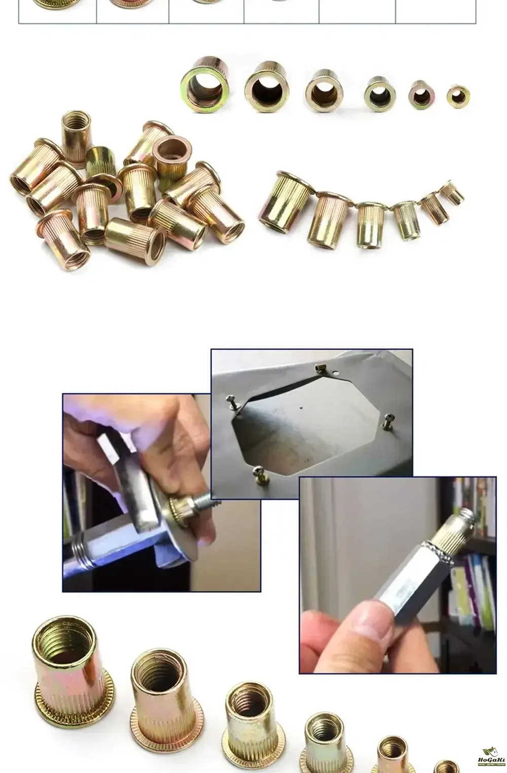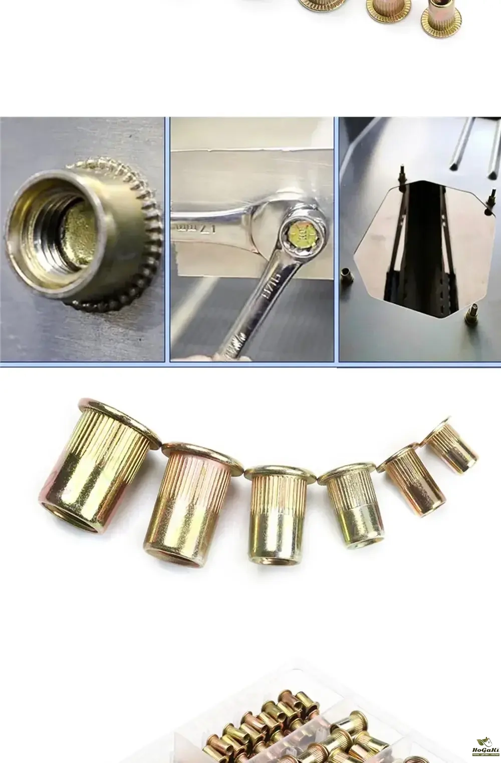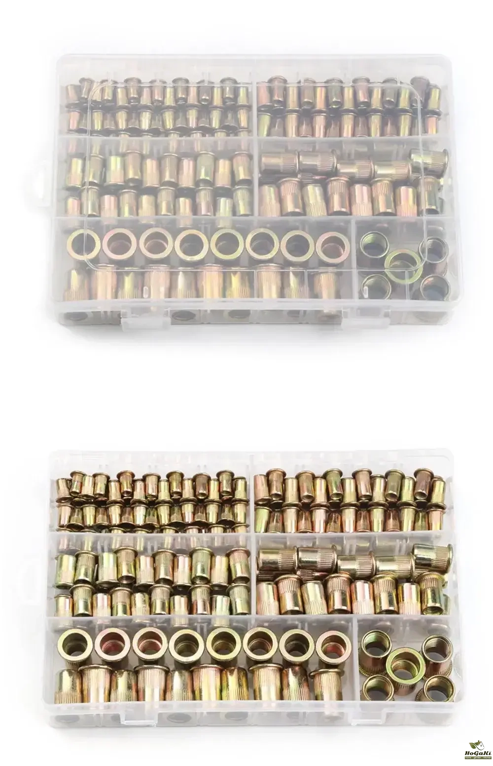 210/165/100PCS Box Carbon Steel Rivet Nuts M4 M5 M6 M8 M10 M12 Flat Head Rivet Nuts Set Hardware Parts Multi Sizes Insert Rivet Nuts