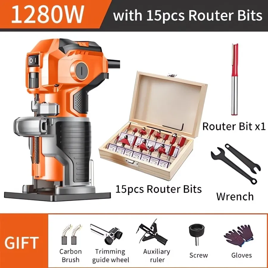 Woodworking Electric Trimmer Manual Engraving Machine Wood Milling Carving Slotting Trimming Machine Wood Router 800W 30000rpm