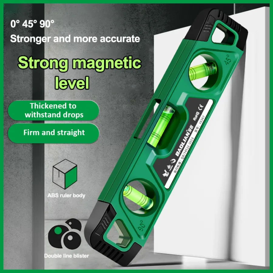 225MM Three Bubble Level Ruler High Precision Spirit Level Magnetic Lever Angle Gauge Finder Leveling Aligner Woodworking tool