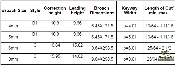 ●4 broaches: 4mm B1, 5mmB1, 6mm C, 8mmC